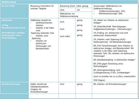 Facility Management: Elektrische Sicherheit » Handbuch » Ausgewählte Verfahrensanweisungen » Gefährdungsbeurteilungen