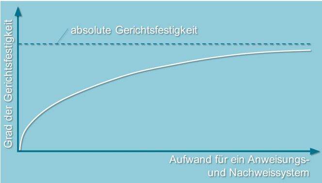 Man spricht von einer 'gerichtsfesten' Organisation, wenn Haftungs- und Strafrisiken für die Organisation und die handelnden Personen darin nach einem möglichen Unfall oder Vorfall durch ordnungsgemäße und regelkonforme Ausübung der Führungspflichten wie 'Auswahl', 'Unterweisung' und 'Überwachung' gemildert werden und entlastende Beweise, die vor Gericht verwendet werden können, ausgeschlossen werden.